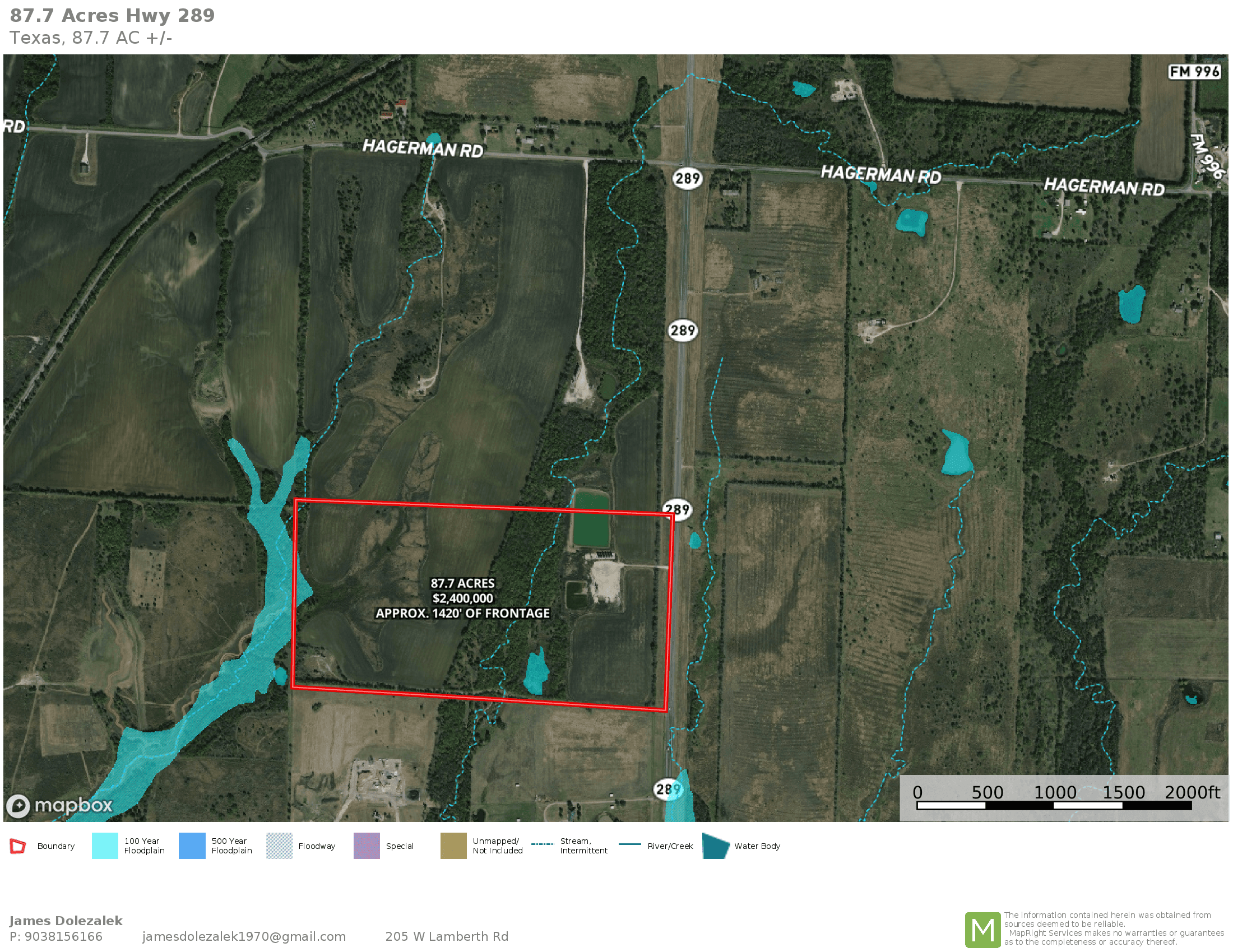 LOCATION, LOCATION, LOCATION!!. Approximately 1420' of Hwy 289 frontage!! Located within close proximity to Hagerman Wildlife Refuge and proposed route of the future Grayson County Parkway connecting Highway 75 to Dallas North Toll Road. East side of Hwy 289 is North Texas Regional Airport. Airport will be expanding as North Texas continues to grow. Pottsboro ISD. Location is within 5 to 7 minutes from shopping, hospital's and multiple restaurant choices.