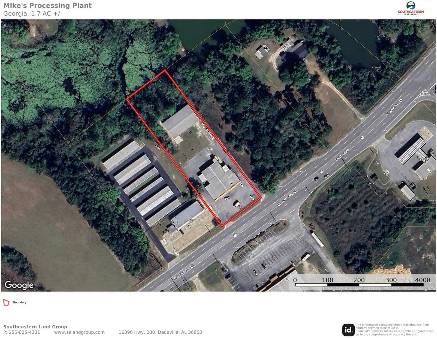 This property has been previously used as a grocery store, then most recently, a meat processing plant. The processing facility is 7,675 SF +/-. There is a 9' x 8' roll up door on the front of the building, and an 8' x 8' roll up door on the rear of the building, along with a receiving dock with a 48" height. There is 3 phase power and a 400 amp electrical panel. The entire interior of the processing plant is refrigerated. There is a large warehouse to the rear of the main building that totals 6,000 SF +/- that has a large, 14' x 14' roll up door.