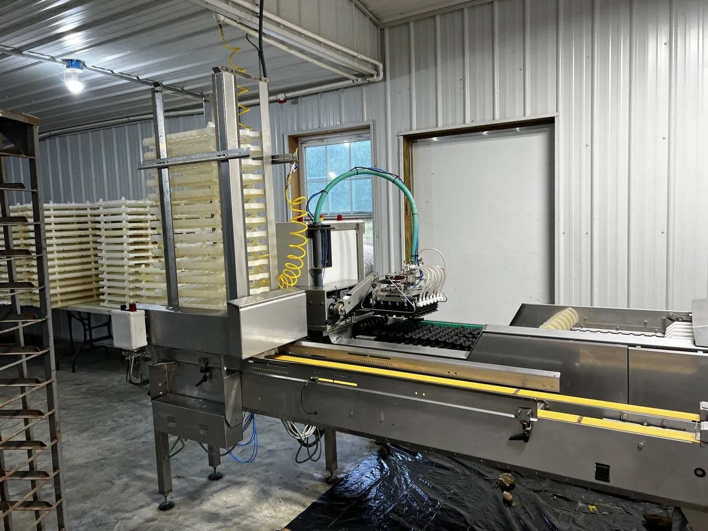 Each house is outfitted with top-tier equipment to maximize efficiency and productivity. Features include a Staalkat egg packer, Rotem controllers, a central egg room (sized for three houses) with a Burch Climate Unit, Munters fans, Lubing drinkers, and LED lighting. The houses also feature Shenandoah double belt nests, two 15-ton feed bins per house including a scale bin, Cyclone feed lines, a Total Radio alarm system, and an incinerator for mortality. City water supplies the operation, and there is a dedicated bathroom with a septic system. A septic tank is also installed near the egg room for added utility.