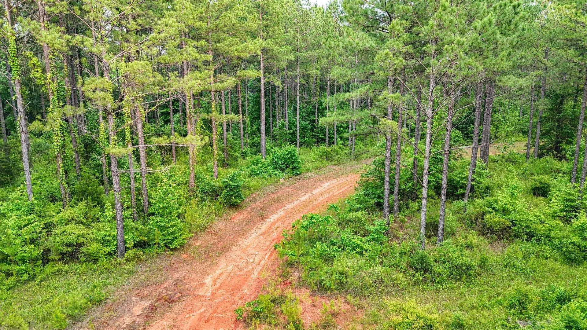 Bush-hogged trails through upland pines, ideal for quail hunting