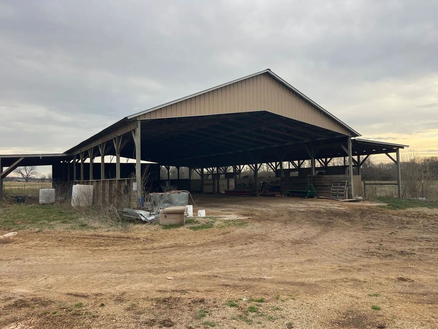 The farm is being sold as a turnkey operation and includes a tractor, de-cake machine, tiller, brush cutter, and leveler. A single-wide mobile home is also located on the property, offering on-site housing. The land features a pond and some pasture area, adding to the overall functionality and appeal of the farm.
