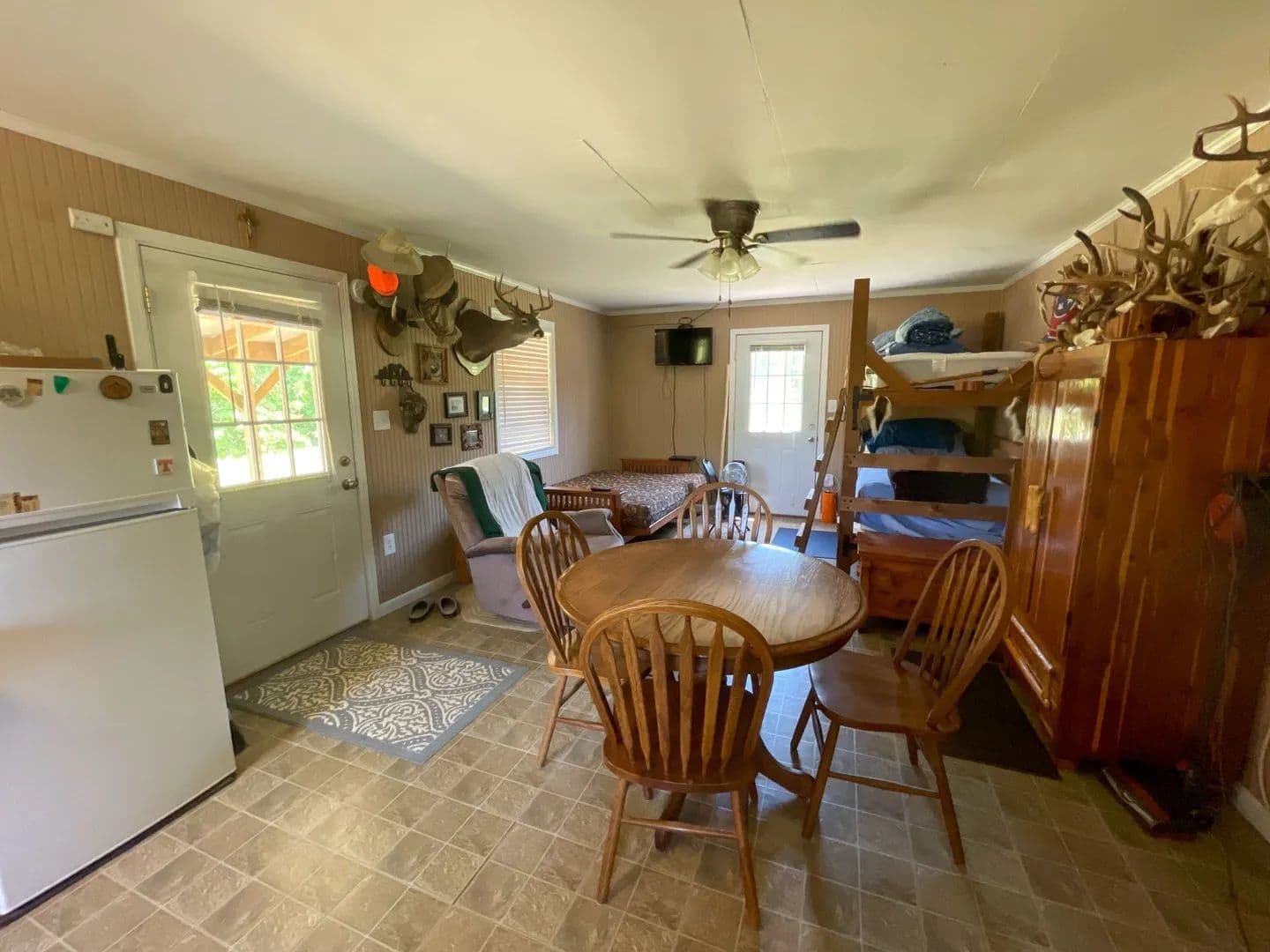 14 x 28 cabin with power, water, and septic—a comfortable place to unwind after a day in the outdoors.