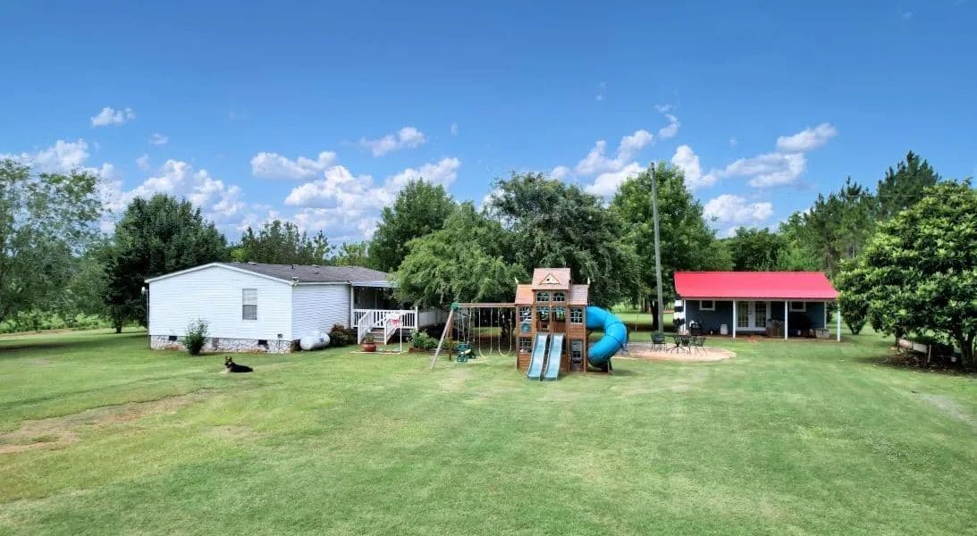 When you turn into the property off of the paved road, you will enjoy the drive along the tree-lined, gravel driveway leading to a magnificent custom built 3 bedroom, 2 ½ bathroom home. There is a custom built storm shelter with full kitchen, 2 bedrooms, 1 bath, sitting area and storage room/pantry that can also serve as a cottage or mother-in-law suite. A 24 foot x 60 foot manufactured home provides additional housing. There are 2 large metal pole barns for equipment or hay storage.