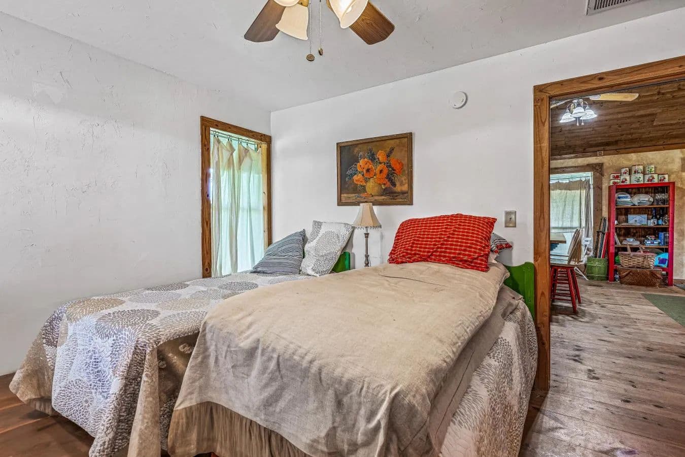 This adorable ranch house sit on 5 acres amongst a cascade of majestic Live Oak trees that fully shade the landscape. The 1,100 sq ft ranch house with a 6ft wrap around porch, gives you a spectacular view of the exotic wildlife, axes deer, whitetails, wild turkey an more. The home is decorated with a country and western charm throughout. An open concept pulls family and friends together. The kitchen and a sit down bar, dining area opens to the magnificent living room with large floor to ceiling windows giving you sunshine and spectacular views. The two bedrooms share a jack and jill bathroom, the utility room houses a full size washer, dryer, hot water heater and HVAC unit. There's couple of lofting sheds with electricity can be used for livestock, an additional storage metal building and a loafing or storage shed with a water facet near. All land owners have complete access to this amazing ranch which is over 1,025 acres Crossbow Ranch offers all the residents the feeling of owning a large ranch. Members own an undivided interest while owning acreage. Although this property isn't a hunting lot you and your family are able to use the amenities - all owners in Crossbow Ranch have access and use of and on 650 acres, a skeet, a 300-yard rifle range, 30 deer enclosed blinds are available to all owners, photographer just grab your camera for photo opt at the feeders, food plots, a walk-in cooler, golf driving range, ATV, hiking and horse riding trails. It's heavily wooded with vegetation supporting the wildlife, trophy whitetail, axis, red stag, turkey and dove. There are creeks that runs through the ranch filling multiple ponds. This home sits towards the back of the ranch, it's a peaceful, serene area that's within walking or ride your ATV, jeep or horses a short distance to the stocked pond for your fishing and eating pleasure. Bosque County known as Top of the Hill Country and you'll enjoy the views and camaraderie among your neighbors and friends here.