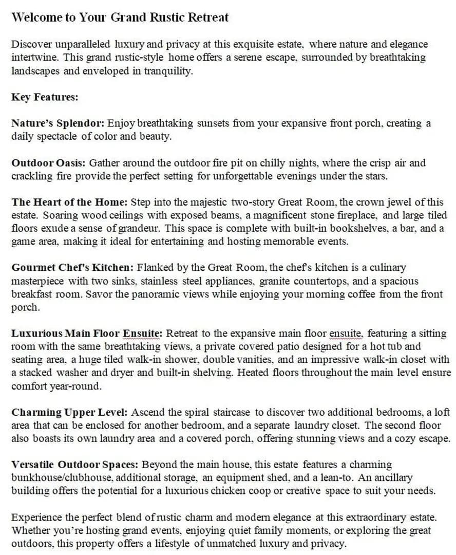 NO HOA, NO FEES, NO RESTRICTIONS, LOW TAXES! Store your boat, camper, etc. Welcome to this luxurious rustic estate offering unmatched privacy & breathtaking views. Nestled in nature, this stunning home features a charming front porch perfect for enjoying spectacular sunsets. The heart of the home is the impressive two-story Great Room w/soaring wood ceilings, exposed beams, stone fireplace, built-in bookshelves, a bar, ideal for entertaining. The gourmet kitchen boasts stainless steel appliances, two sinks, granite countertops & spacious breakfast room w/panoramic views. The main floor suite offers a sitting room, private patio ready for a hot tub, a walk-in shower, double vanities & walk-in closet w/washer & dryer. The upper level features 2 additional bedrooms, a loft, & second laundry space. Outdoors discover a bunkhouse, storage sheds & an ancillary building suitable for a fancy chicken coop or creative use. Experience the perfect blend of rustic charm and modern homestead has so much to offer! Radiant heat floors throughout main level, 3 laundry areas (one in primary closet, one in utility room, the other upstairs), private covered porch off primary suite has electric for hot tub, entrances on upper level and lower level, staircase space designed for future elevator use and so much more!
