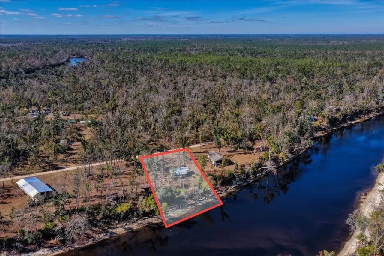 Enjoy peaceful river living at Boundary Bend on the Suwannee River. This fully improved half-acre riverfront lot is ready to use, featuring a well, power, and septic already in place.