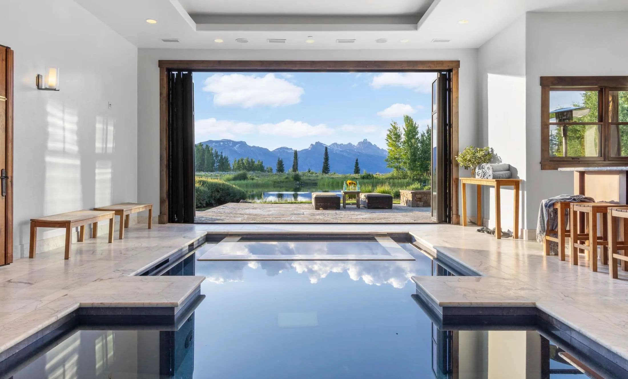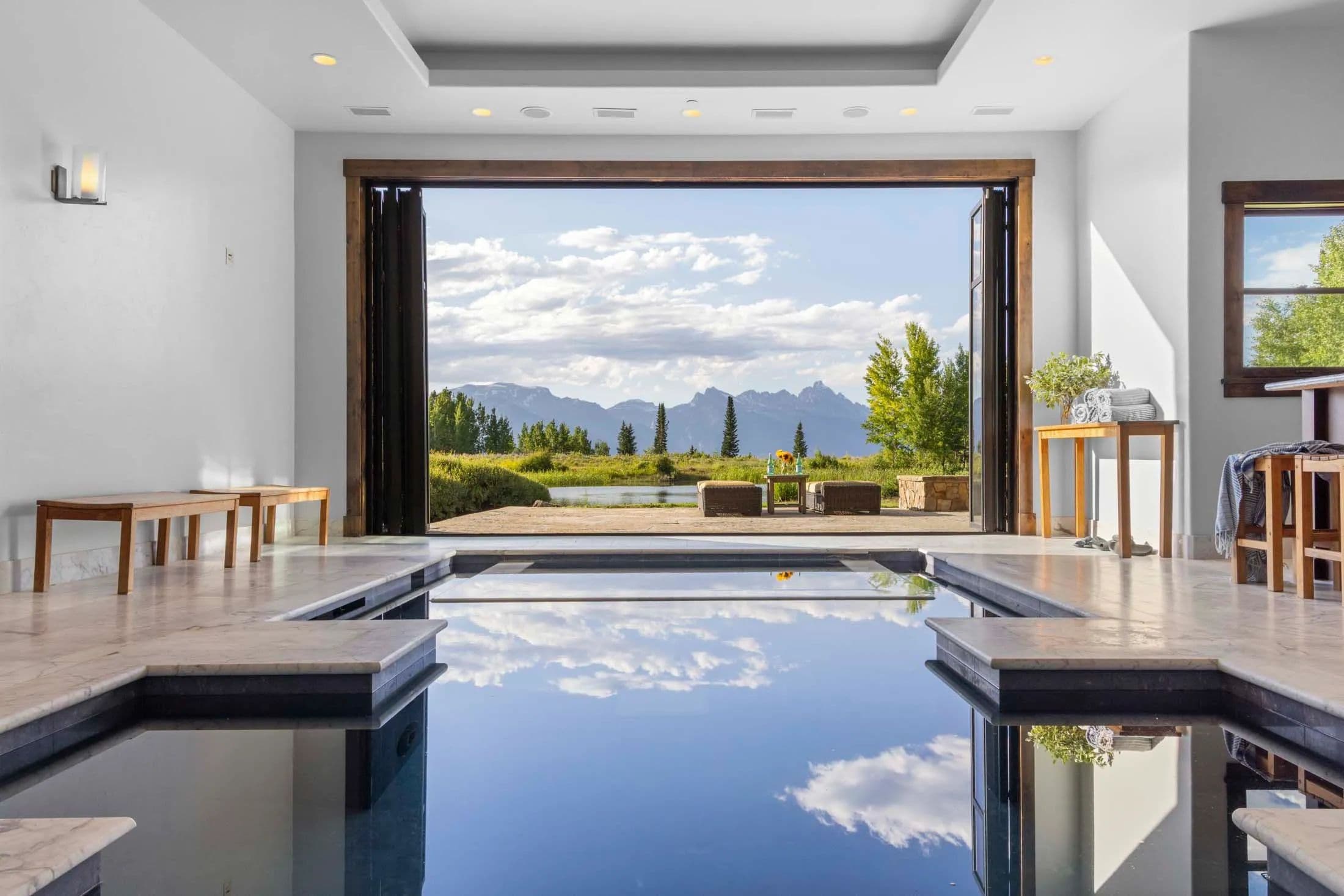 A 117-acre private compound with 360-degree views, unmatched privacy, and multigenerational scale—just 15 minutes from town. Set atop East Gros Ventre Butte, Riva Ridge Reserve offers an extraordinary combination of seclusion, architectural presence, and natural beauty. Rising 800 feet above the valley floor, the estate captures sweeping views of the Teton Range, Sleeping Indian, the National Elk Refuge, and downtown Jackson, with no other homes in sight. At the heart of the compound is a 12,705-square-foot main residence inspired by the great lodges of the West, complete with an indoor pool and spa, theater, gym, wine cellar, and five en-suite bedrooms. A 3,978-square-foot guesthouse includes four bedrooms, six fireplaces, and panoramic decks. A 1,695-square-foot garage studio compound—connected to the main house via an underground wine cellar tunnel—offers additional living quarters, a greenhouse, and a heated three-car garage. Three ponds with live water enhance the landscape, drawing abundant wildlife to the property year-round. Designed for full off-grid capability, the estate includes a 5,000-gallon propane tank, 45-kilowatt generator, and plowed year-round access. With three grandfathered residential structures and approximately 70% of the land in conservation, Riva Ridge Reserve is one of the most protected and private offerings in Jackson Hole—an ideal mountain retreat for legacy living.